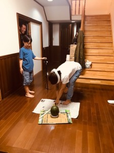 そんな中で早い奥野家のスイカ割り大会が開催されました。